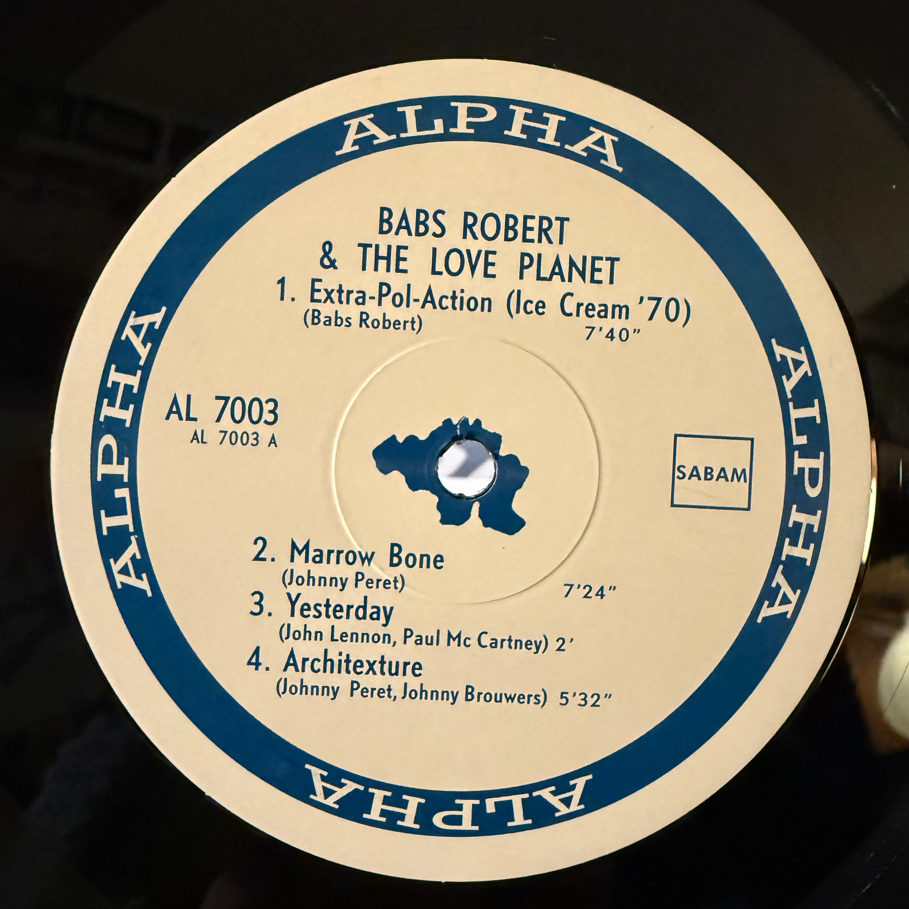 Whereas the post-war modern jazz scene produced a few notable successes, trad and New Orleans style jazz remained popular and bebop and swing were still played during the peak post-bop and free jazz years of the late-60s and early-70s. Despite the overwhelming popularity of ‘historic’ forms, there were a few worthy exceptions who pointed the way to the future: composer and pianist Marc Moulin formed his first trio in 1961 as a backing band for expatriate American musicians such as Johnny Griffin and Don Byas. He later collaborated with Philip Catherine to form Placebo, a group that mixed jazz, funk, rock, and electronic sounds. Their influences ranged from Jimi Hendrix to James Brown, via Herbie Hancock and Soft Machine, and they experimented with the Moog and early synthesizers. Between 1971 and 1975, Placebo released three albums that have become much sought after by DJs and producers for beats and grooves to sample. Moulin also contributed sleeve notes to one of the most sought after European deep jazz re- cordings of the late 1960s and early 1970s, and it’s a Belgian recording no less:‘Babs Robert and the Love Planet’ (Alpha 7003, 1970) is one of the few examples of Belgium avant-garde jazz and was originally released on the Alpha label, a tiny enterprise based in Jette, Belgium. Alpha released renaissance / baroque music, and the Babs Robert album is a wonderful aberration that is such an outlier as to be seemingly from another planet – the very Love Planet name-checked in the title perhaps?